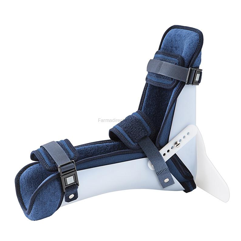 Para su correcta colocación seguir los pasos: Antes de la colocación de la ortesis al paciente, regular la flexión plantar o dorsal mediante los tirantes medial y lateral en un rango de 75º en intervalos de 15. A continuación regule la rotación interna o externa en la base del triángulo. Coloque e introduzca el pie en el interior de la férula. Ajuste la cincha central para finalizar ajustando la cincha de antepié y pantorrilla centrando las almohadillas correspondientes.