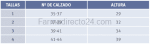 Para su correcta colocación seleccione el lado y la talla adecuada dependiendo del número de calzado. El dispositivo se sirve con plantilla completa del pie que debe ser ajustada a la horma del calzado.