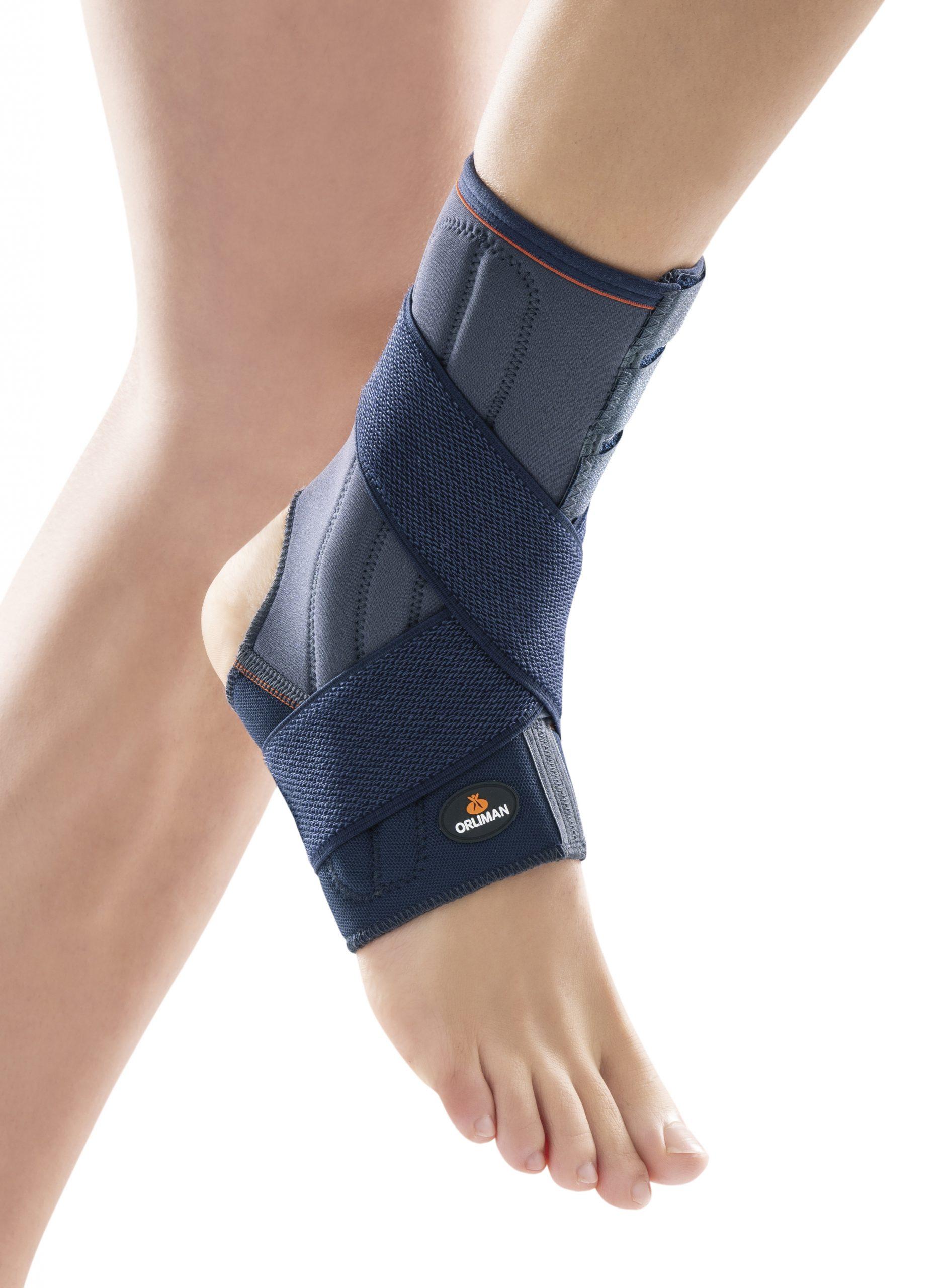 Orliman tobillera de neopreno con estabilizadores. Ortesis de tobillo fabricada en neopreno con sistema de estabilización, refuerzos medio-laterales en espiral y cincha semirrígida. Incluye orificio para el talón y cierre proximal en velcro para una perfecta adaptación anatómica.